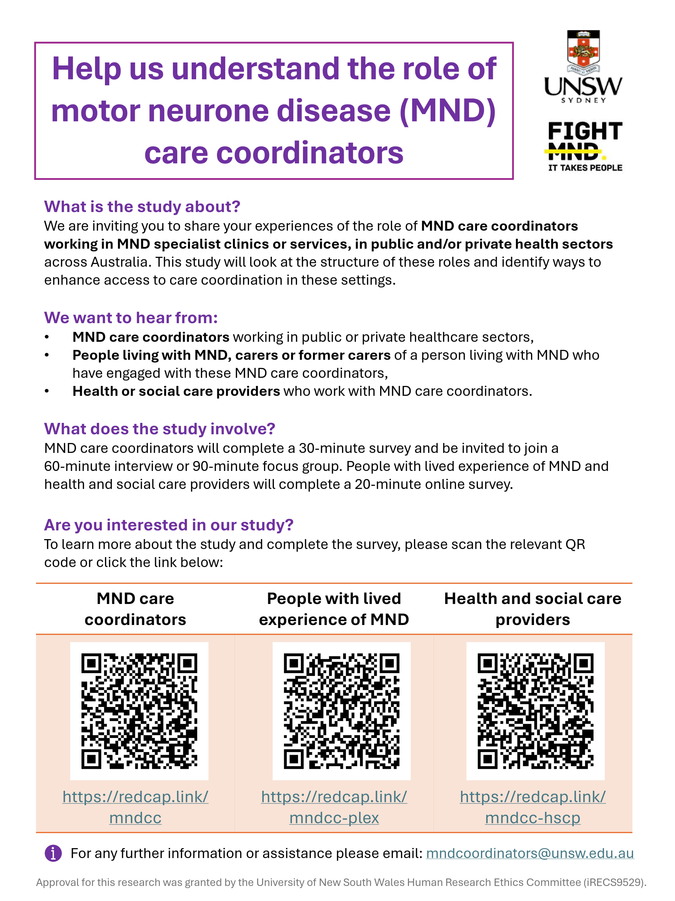 Researchers from the University of New South Wales are seeking to better understand the role of MND care coordinators, and they need your input.