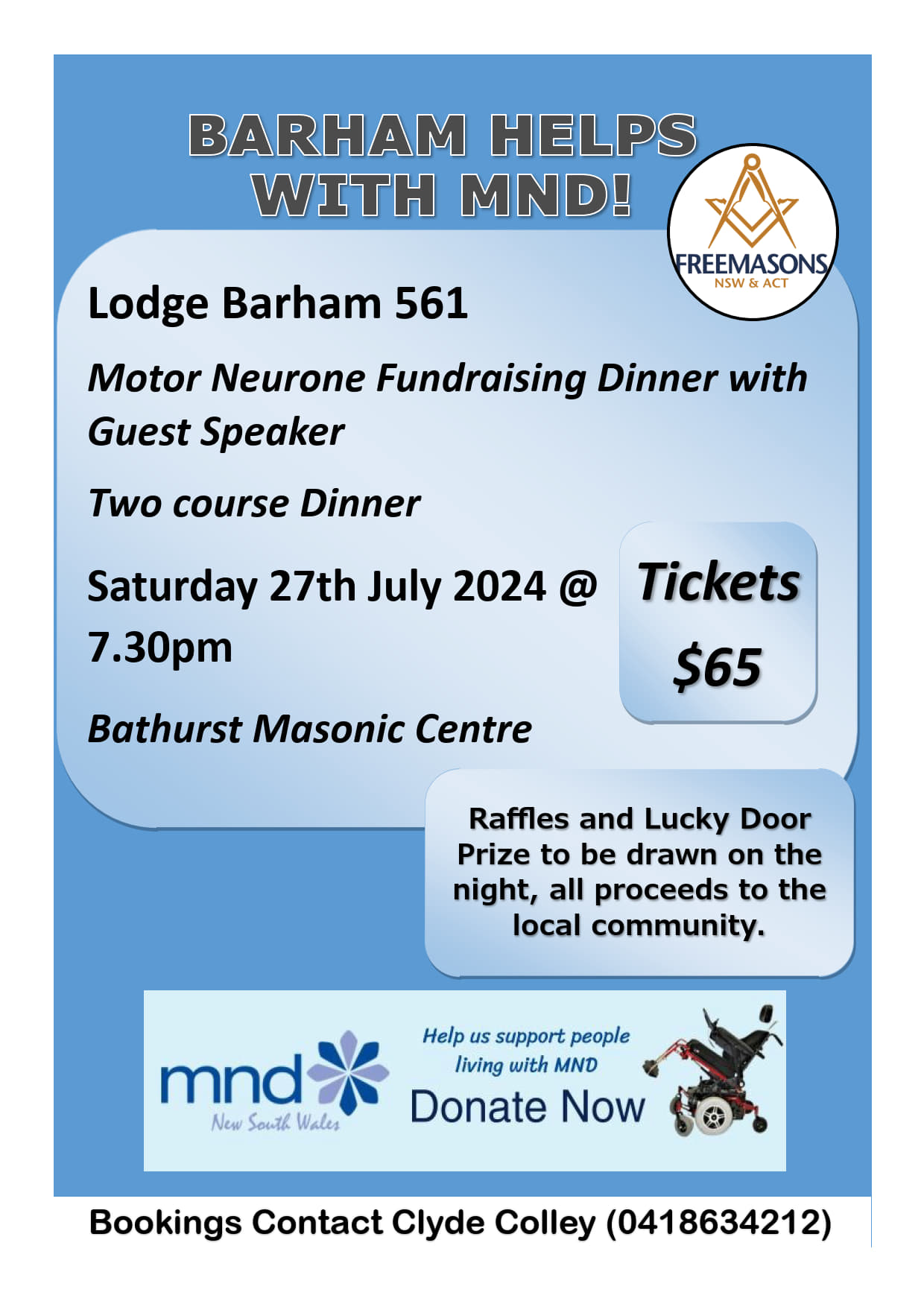Tickets are $65, for bookings contact Clyde Colley on 0418634212.