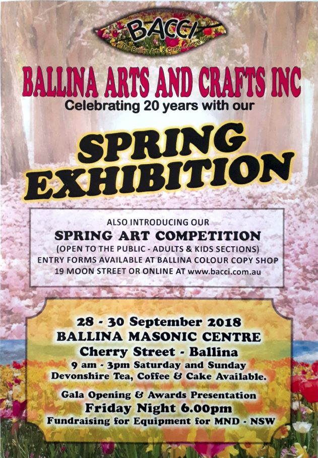 Ballina Arts and Crafts Inc are celebrating 20 years with their Spring Exhibition and Spring Art Competition.