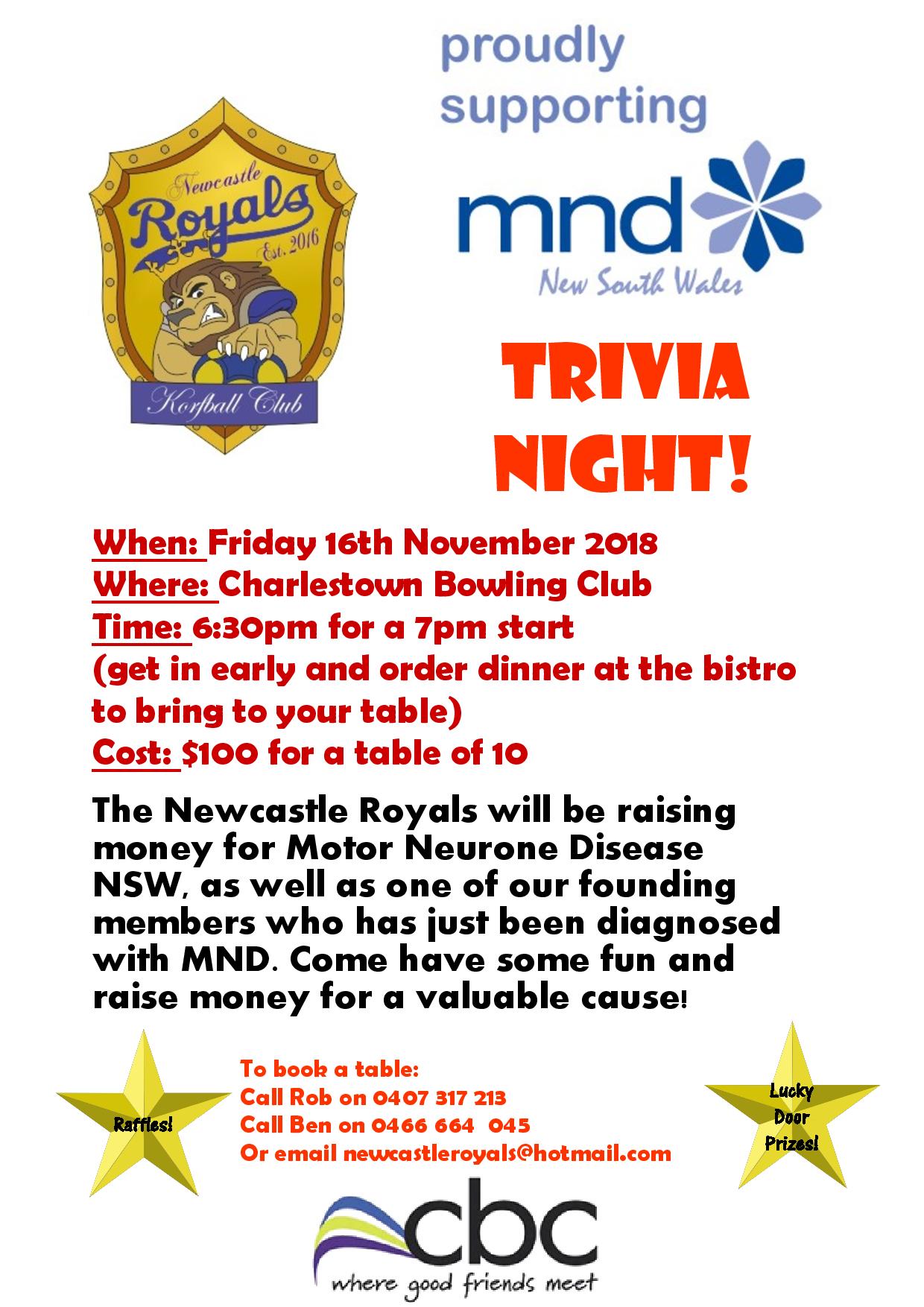 The Newcastle Royals will be raising money for MND NSW, as well as one of the clubs founding members recently diagnosed with MND. For information contact Rob on 0407 317 213 or Ben on 0466 664 045 or email This email address is being protected from spambots. You need JavaScript enabled to view it..