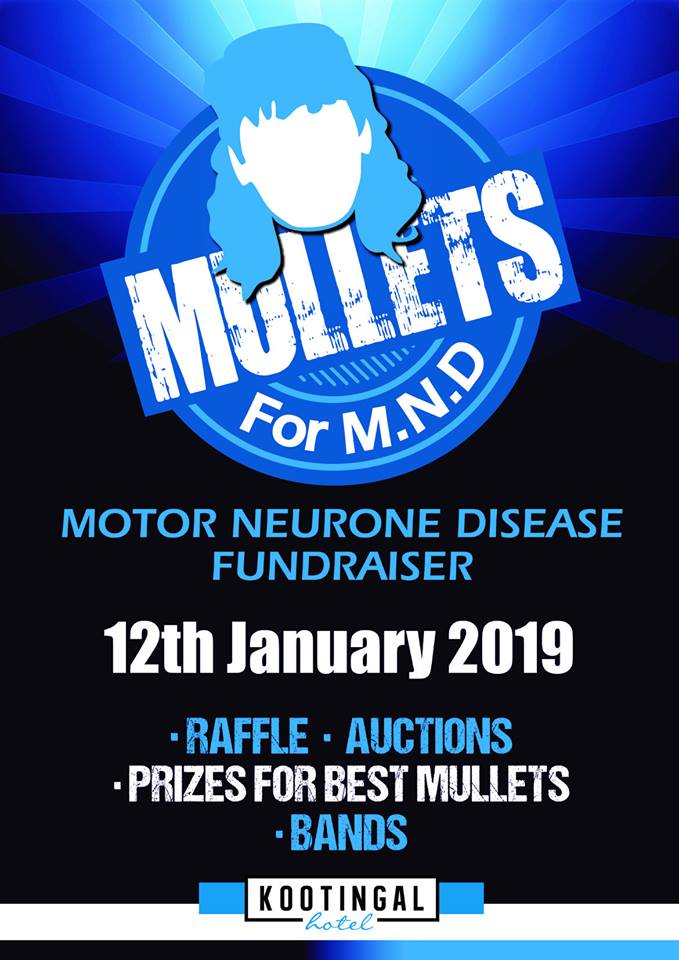 A fundraiser for motor neurone disease with prizes for best mullets, a raffle, auctions and bands at the Kootingal Hotel.