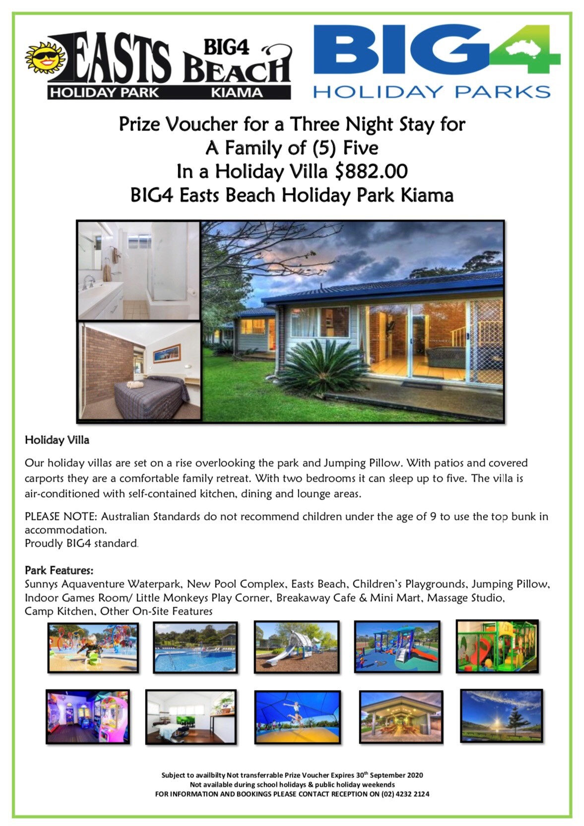 Get your ticket now for the 'Never Give Up Raffle' proudly supported by Big4 Easts Beach Holiday Parks Kiama.