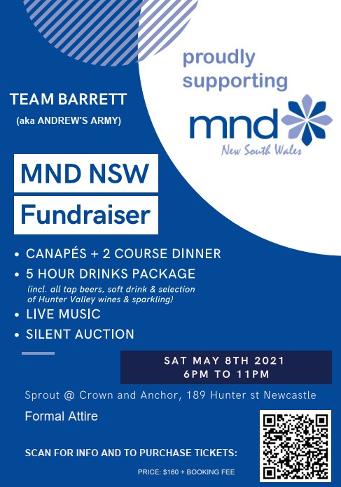 The Team Barrett (aka Andrew's Army) MND NSW Fundraiser is set to be a night of fine food and drink, live music, fundraising and fantastic fun! So frock up in your formal attire and come along!