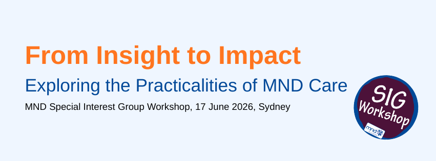 The MND Special Interest Group (SIG) Workshop is for health and community care professionals who have an interest in Motor Neurone Disease (MND).  People living with MND and their family members are also welcome to attend without cost.